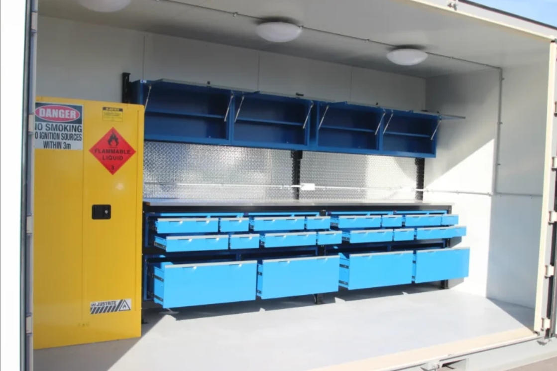 Der 20 Fuß Side Opening Werkstattcontainer wurde für Einsatzorte entwickelt, an denen Mobilität, Effizienz und Robustheit unerlässlich sind.