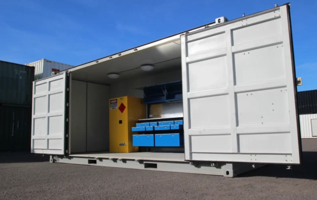20′ Werkstattcontainer mit Seitenöffnung – Ihre mobile Einsatzbasis vor Ort