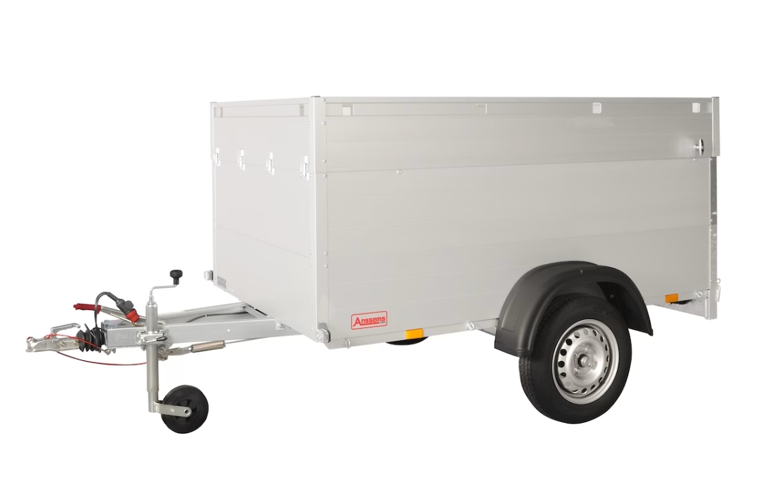Der ANSSEMS Deckelanhänger mit stabiler Aluminiumkonstruktion in einem modernen Design, wurde speziell für den Verbrauchermarkt mit seinen vielseitigen Gebrauchsanforderungen entwickelt. Er verfügt über einen stabilen, nach vorne zu öffnenden Deckel ausgestattet mit einer Reling und 2 hydraulischen Öffnungshilfen. An der Innenseite sind Zurreihen integriert, damit Bindeösen an beliebigen Positionen befestigt werden können. Die Innenhöhe von 83 cm ermöglicht außerdem das Laden von einem größeren Volumen. Weitere Vorteile wie ein niedriges Leergewicht, 8 Bindeösen an Außenseite, Stützrad und rutschfester Holzboden runden seine Vielseitigkeit ab.