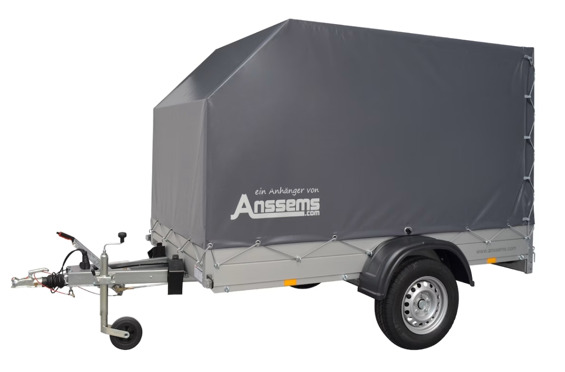 Der ANSSEMS Kastenanhänger besteht aus einer stabilen Aluminiumkonstruktion und hat ein modernes Design. Er verfügt über ein niedriges Leergewicht, 30 cm hohe Alubordwände, 8 Bindeösen an der Außenseite, Stützrad und rutschfesten Holzboden. Das Planengestell ist sehr stabil und robust durch vernietetem Vierkantstahlrohraufbau. Die Hochplane besteht aus einem hochwertigen Qualitäts-Planentuch (LKW-Qualität) und verfügt über eine Windschräge. Diese bietet einen großen Vorteil im Hinblick auf Aerodynamik und Kraftstoffreduzierung.