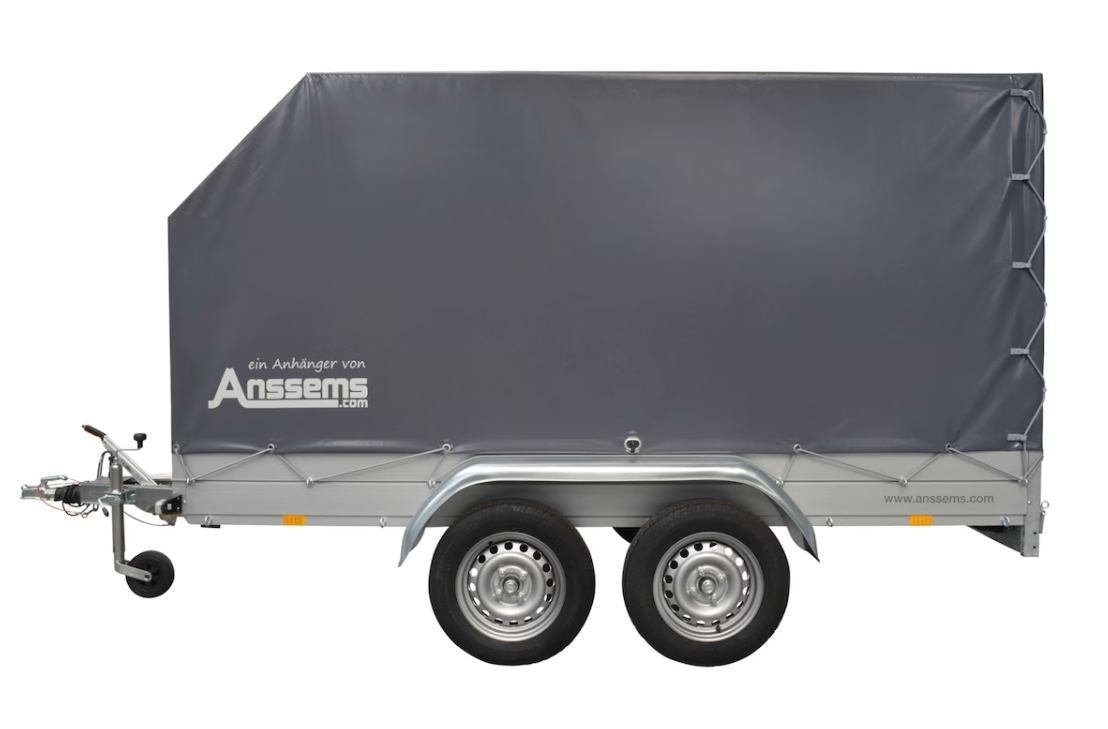 Der ANSSEMS Kastenanhänger besteht aus einer stabilen Aluminiumkonstruktion und hat ein modernes Design. Er verfügt über ein niedriges Leergewicht, 30 cm hohe Alubordwände, 8 Bindeösen an der Außenseite, Stützrad und rutschfesten Holzboden. Das Planengestell ist sehr stabil und robust durch vernietetem Vierkantstahlrohraufbau. Die Hochplane besteht aus einem hochwertigen Qualitäts-Planentuch (LKW-Qualität) und verfügt über eine Windschräge. Diese bietet einen großen Vorteil im Hinblick auf die Aerodynamik und der Kraftstoffreduzierung.
