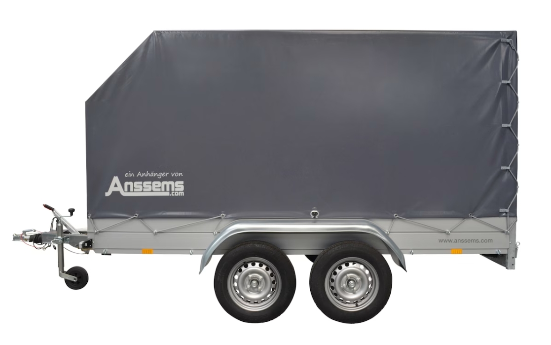 Der ANSSEMS Kastenanhänger besteht aus einer stabilen Aluminiumkonstruktion und hat ein modernes Design. Er verfügt über ein niedriges Leergewicht, 30 cm hohe Alubordwände, 8 Bindeösen an der Außenseite, Stützrad und rutschfesten Holzboden. Das Planengestell ist sehr stabil und robust durch vernietetem Vierkantstahlrohraufbau. Die Hochplane besteht aus einem hochwertigen Qualitäts-Planentuch (LKW-Qualität) und verfügt über eine Windschräge. Diese bietet einen großen Vorteil im Hinblick auf die Aerodynamik und der Kraftstoffreduzierung.